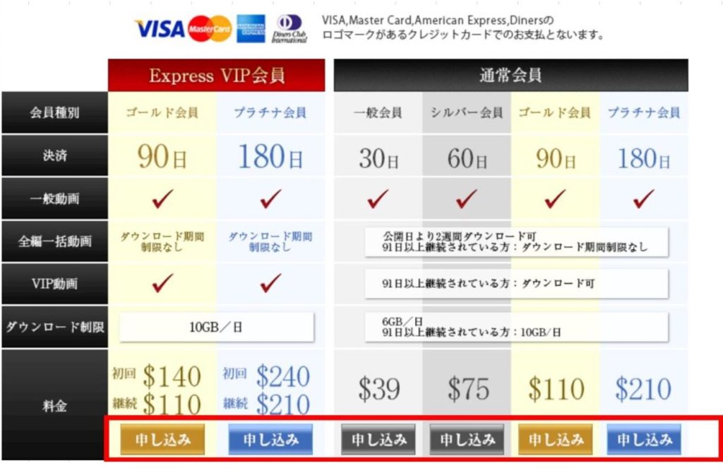 JAPANSKA(ヤパンスカ)の料金プランは、『通常会員』『VIP会員』の2種類の会員タイプに加えて、それぞれの会員期間に応じた6通りがありますが、視聴できる動画数が倍以上ッ!